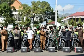 Penyerahan kendaraan roda dua kepada babinsa dan bhabinkamtibmas sebagai bentuk keseriusan pemerintah dalam menjaga keamanan Kota Bima.
